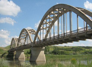 The Borden Bridge is a historic concrete bowstring-arch bridge spanning the North Saskatchewan River, located just east of the Village of Borden along Highway 16. Originally known as the Ceepee Bridge, it remains one of Saskatchewan’s most recognizable Depression-era engineering landmarks.